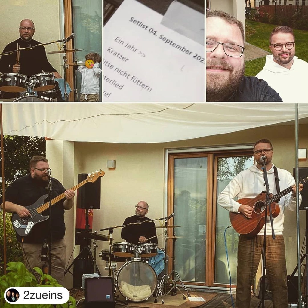 Endlich wieder Livemusik! Unser erstes Trio-Konzert seit fast zwei Jahren (!) führte uns nach Großzschocher zu einer Open-Air-Schulanfangsparty. Und es hat unglaublichen Spaß gemacht, wieder vor echtem Publikum handgemachte Musik darzubieten. Natürlich gab’s die Songs von unserer neuen Platte „Helden mit Dellen“, dazu eine Handvoll „Klassiker“ und eine wirklich, wirklich ungeprobte – weil unerwartete – zweite Zugabe.